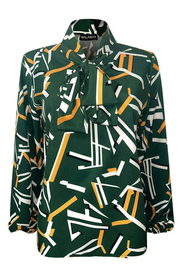 BEXLIE ABSTRACT PRINT BLOUSE WITH BOW