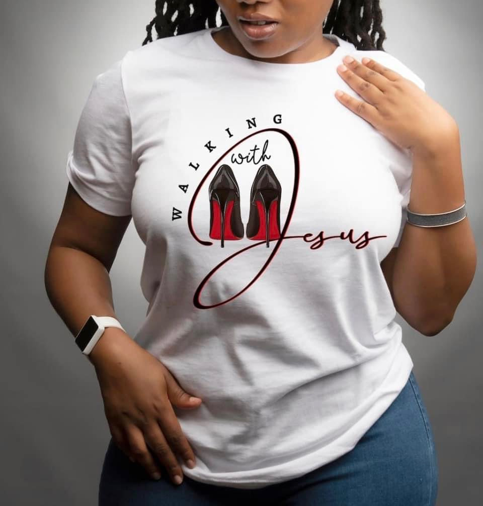 Express your faith fashionably with our Walking With Jesus T-shirt. This attractive tee is constructed from 100% cotton, promising you an ultimate in softness, breathability, and longevity. Its eye-catching design is filled with popping colors that add a stylish edge to any casual look. With this T-shirt, you can share your faith with style!