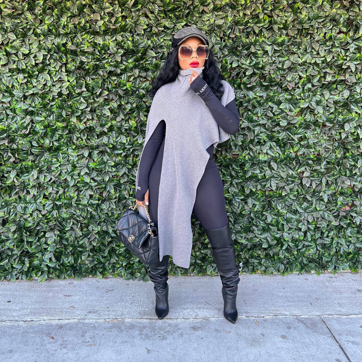 HIGH NECK SPLIT IRREGULAR KNIT CLOAK