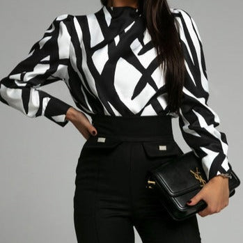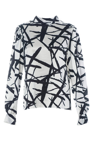 ABSTRACT SATIN TOP BLOUSE SHIRT