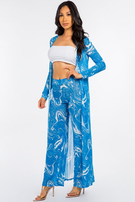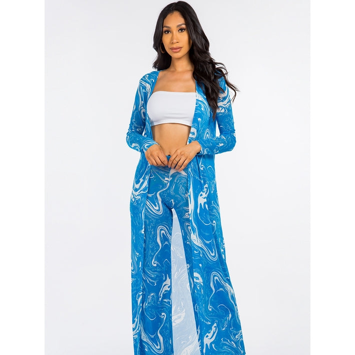 Going for a casual outing or a cocktail party? Our Subtle Allure Sheer Mesh Cardigan Sets are your perfect style partner. These delightful print design sets exemplify chic and sophistication. The set includes a sheer cardigan and a breezy palazzo wide-leg bottom. The cardigan, featuring a regular fit, doesn't just look good but offers comfort too. The palazzo bottom is an epitome of style that caters to modern fashion trends perfectly. Crafted from 92% polyester and 8% spandex, these sets guarantee a stretchable, comfy fit. Ideal for wearing in spring and summer seasons, these Sheer Mesh Cardigan Sets are an indulgence you wouldn't wanna miss.