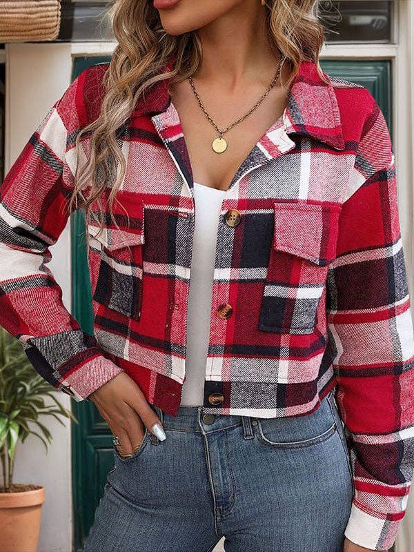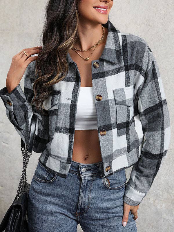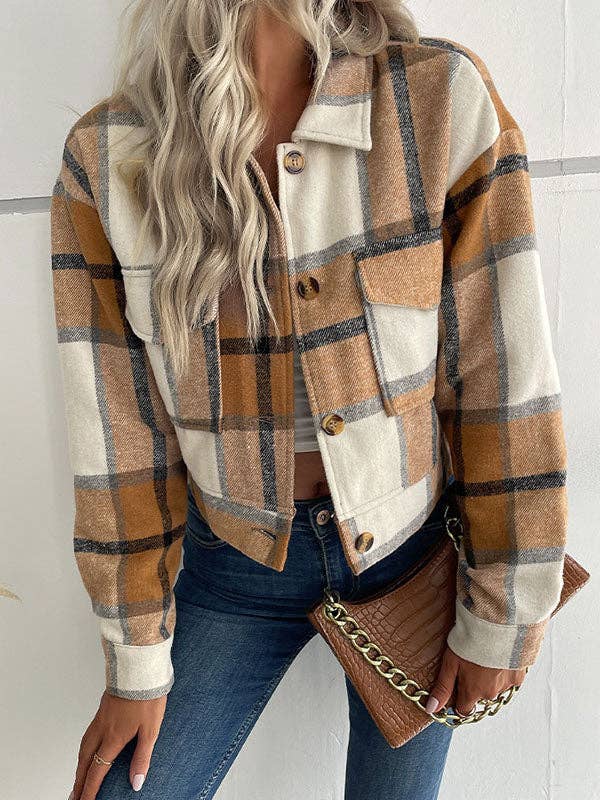 UZ Wholesale Store - Long Sleeves Loose Buttoned Plaid Pockets Split-Joint Lapel Jackets Outerwear